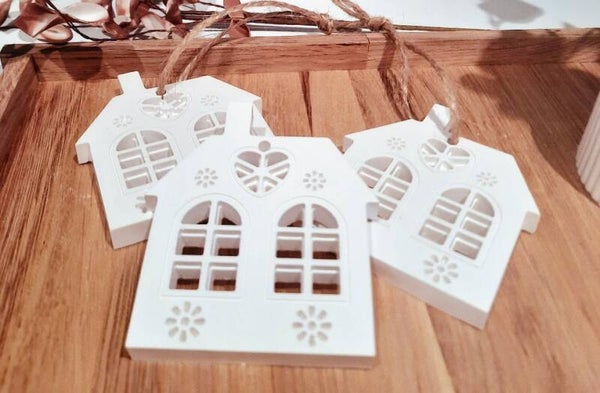 Diese entzückenden kleinen Häuser-Anhänger sind perfekt, um deiner Dekoration eine heimelige Note zu verleihen. Jedes Haus ist liebevoll handgefertigt und mit charmanten Details versehen. Hänge sie an deine Türgriffe, deine Fenster oder verwende sie als niedliche Akzente für deinen Osterstrauß oder deine Geschenkverpackungen.