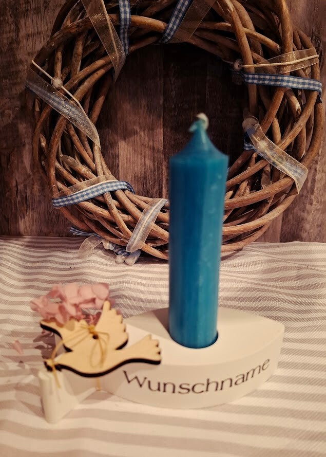 Jeder Kerzenhalter wird von mir individuell gefertigt und kann mit einer passenden Kerze und einem dekorativen Anhänger ergänzt werden. Die schlichte Eleganz des Designs fügt sich harmonisch in jede Einrichtung ein und sorgt für eine warme, einladende Stimmung.