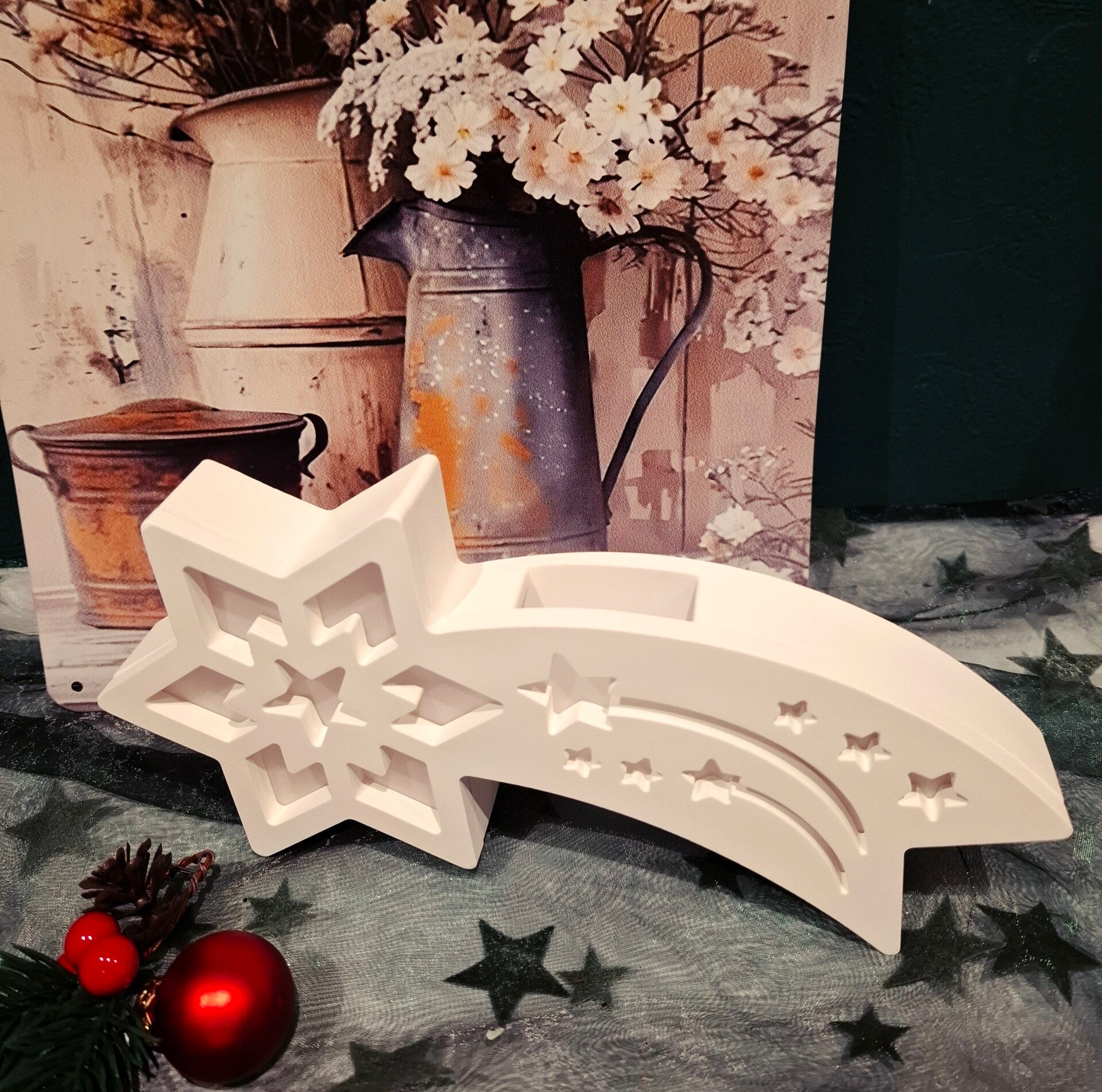 Ob auf der Fensterbank, im Regal oder als leuchtender Blickfang in deiner Winterdeko – diese Sternschnuppe sorgt überall für ein sanftes, festliches Strahlen.