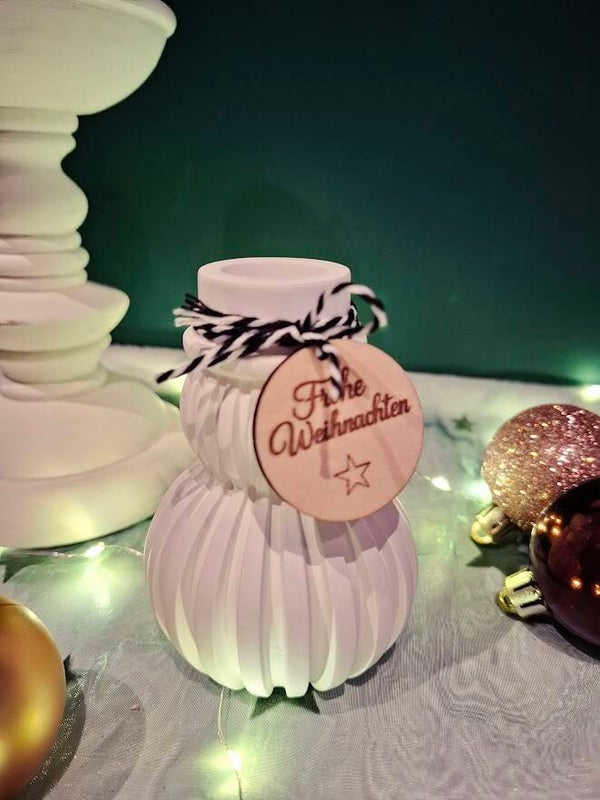 Mit seinen ca. 10,5 cm Höhe steht er für die stillen, goldenen Momente der Adventszeit. Seine sanften Rillen verleihen ihm eine besondere Struktur, die das Licht liebevoll einfängt.