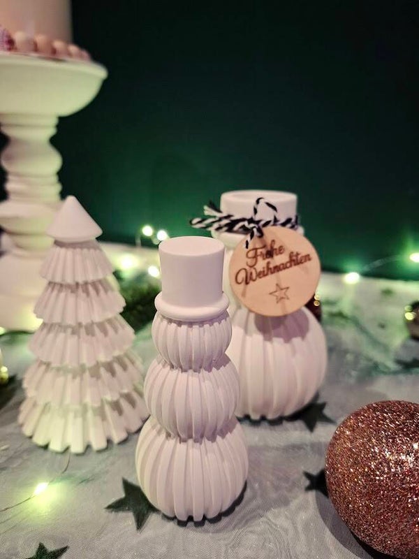 Mit seinen rund 10 cm Höhe und seinem gemütlich-runden Bauch von ca. 6,5 cm wirkt er wie frisch aus einer verschneiten Märchenlandschaft. Oben im Zylinder verbirgt sich ein kleines Highlight: ein Loch für ein schmales Kerzchen. Sobald der Docht brennt, wirkt es, als würde er ein warmes Winterlächeln ausstrahlen.