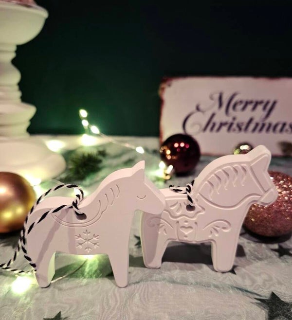Diese beiden kleinen Pferdchen bringen eine Portion nordische Winterliebe in dein Zuhause. Mit ihren ca. 7 x 7 cm sind sie herrlich handlich und ein absoluter Blickfang – egal, ob sie am Christbaum schaukeln oder ein Geschenk mit einem besonderen Funken Herz abrunden.